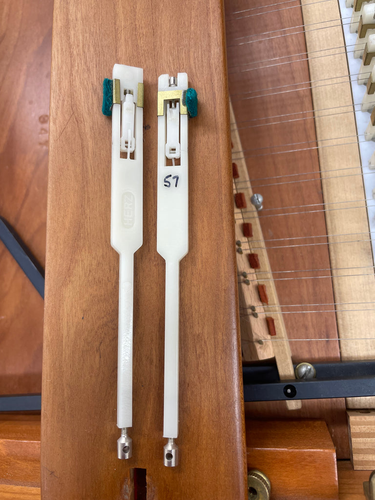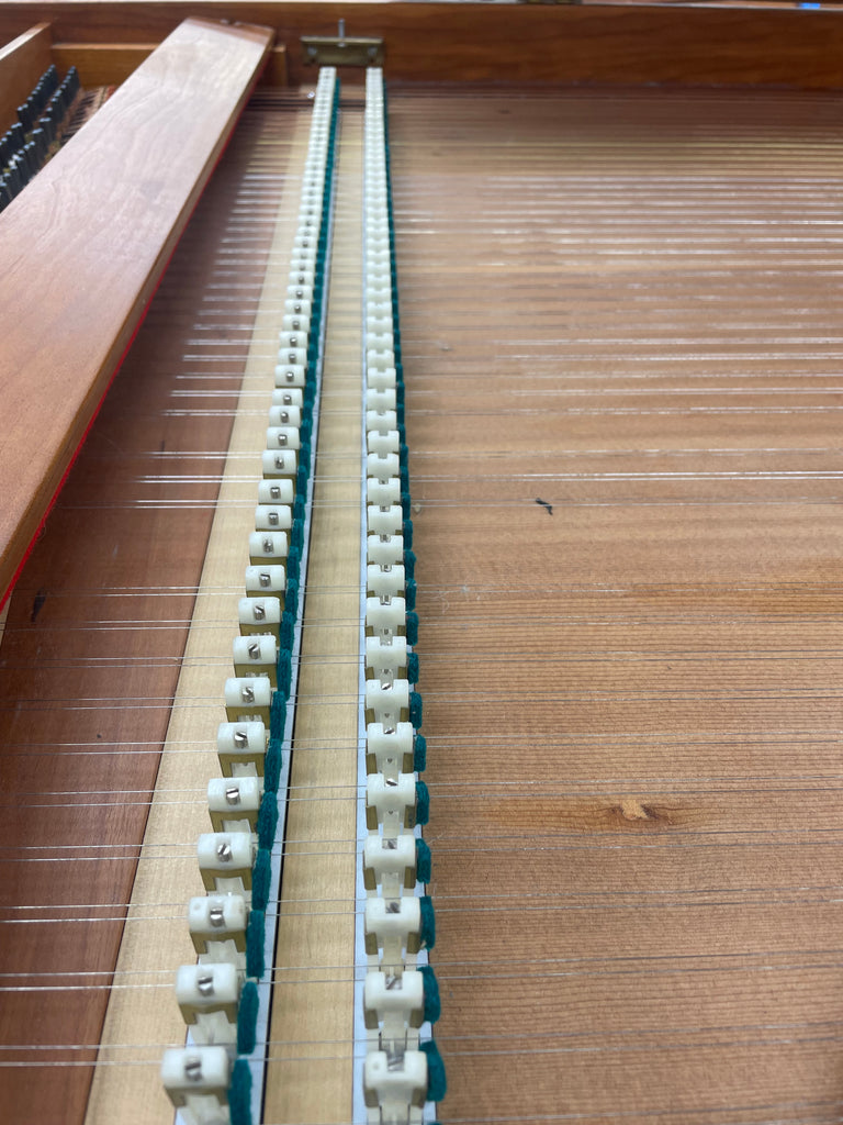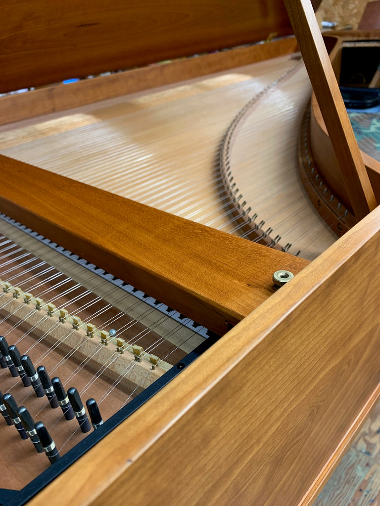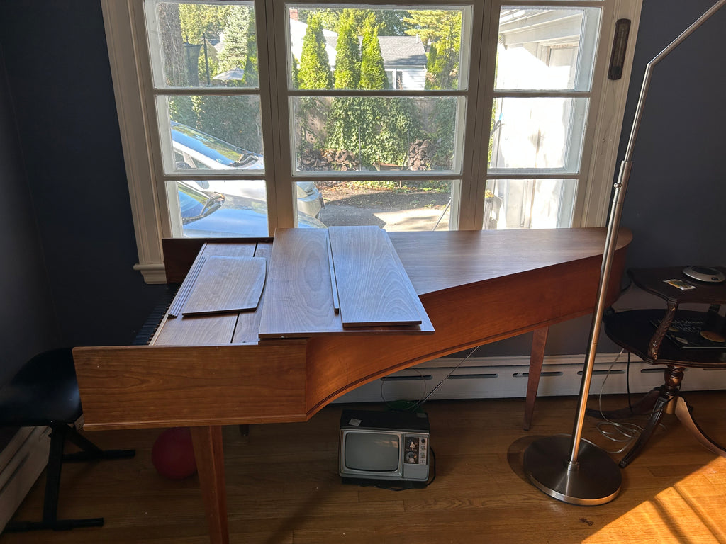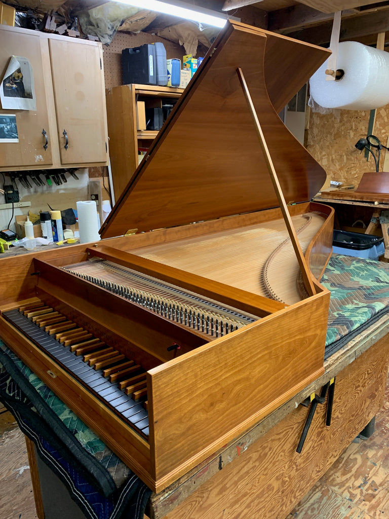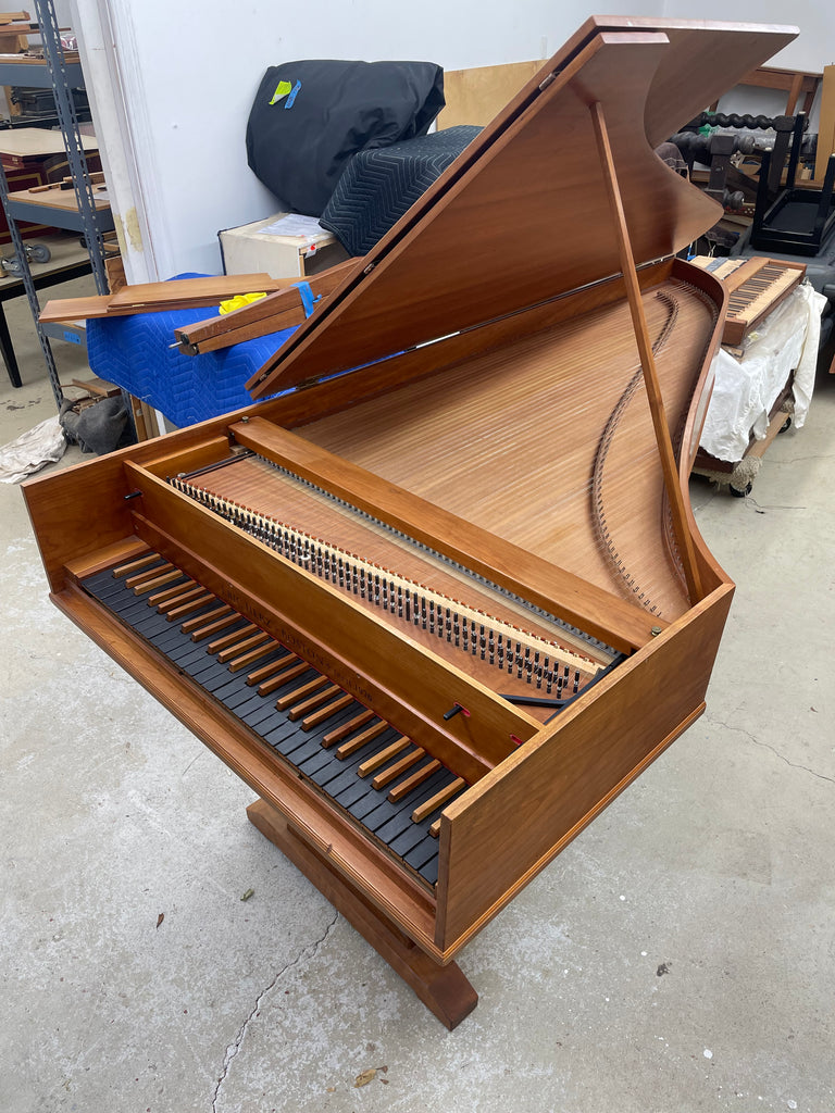Eric Herz German single - Model S - shop built in 1976.  AA- f"' transposing 8'8' with buff stop.  Case of hand rubbed/ waxed cherry with keyboard of ebony with cherry sharps.  Rebuilding in progress 11/25 in our shop.  These photos show the instrument in arrival condition- tapered straight leg stand included, and two photos of a recently completed rebuild.  With full kit; optional cover.  Available 90 days from contract and offered at $8900.