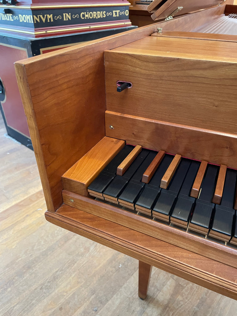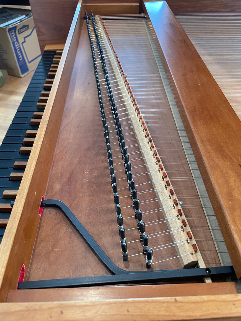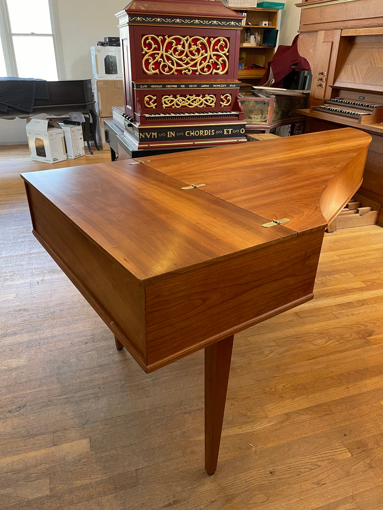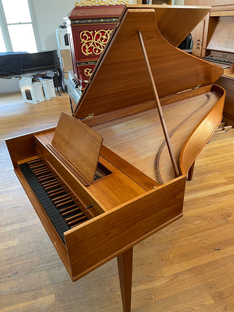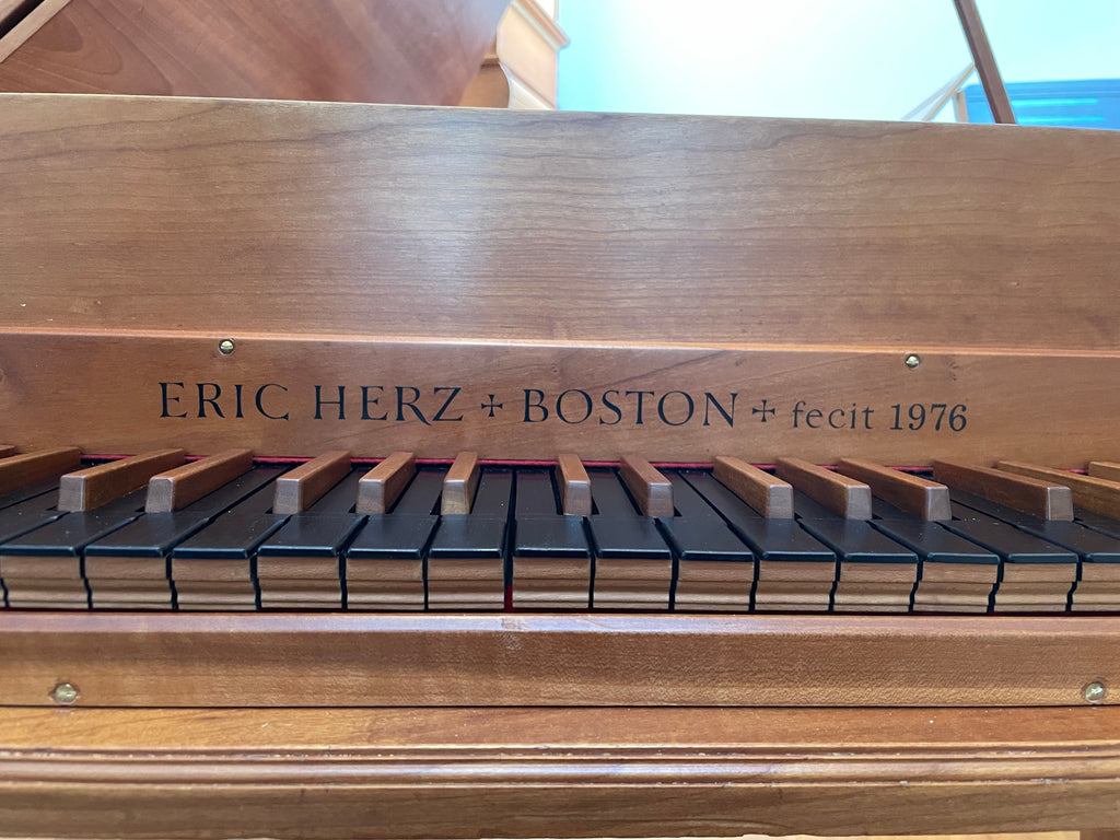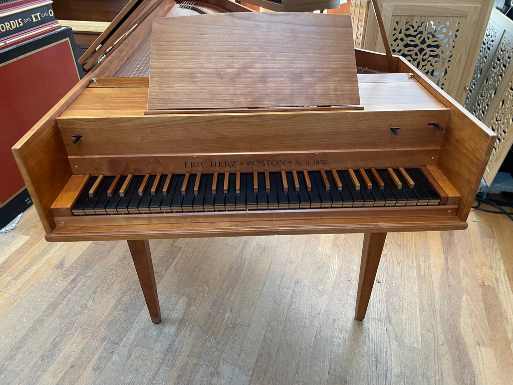 Eric Herz German single - Model S - shop built in 1976/ HCH 2026. AA- f"' transposing 8'8' with buff stop. Case of hand rubbed/ waxed cherry with three tapered cherry legs ( screw on). The 57 note keyboard has ebony naturals with cherry sharps. With full kit; optional cover. We have just completed a full rebuild and have an instrument with a big voice offered at $8900. Ready to go 2/1/26.