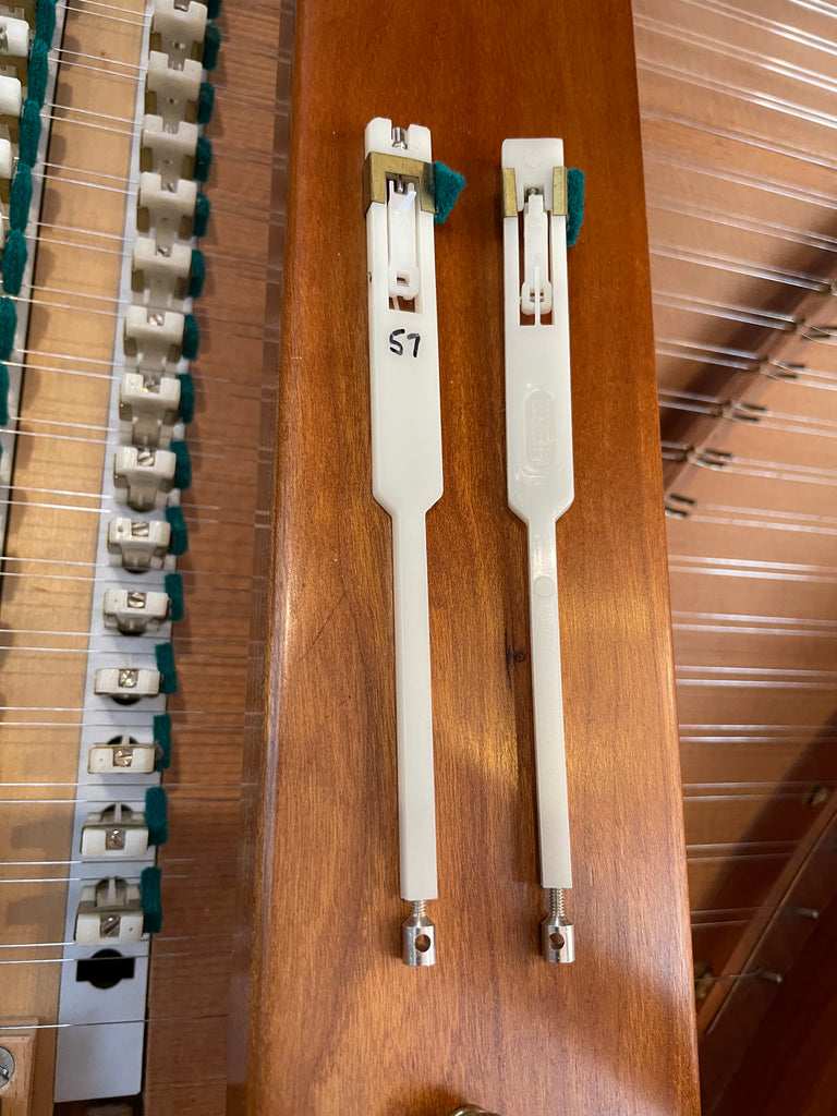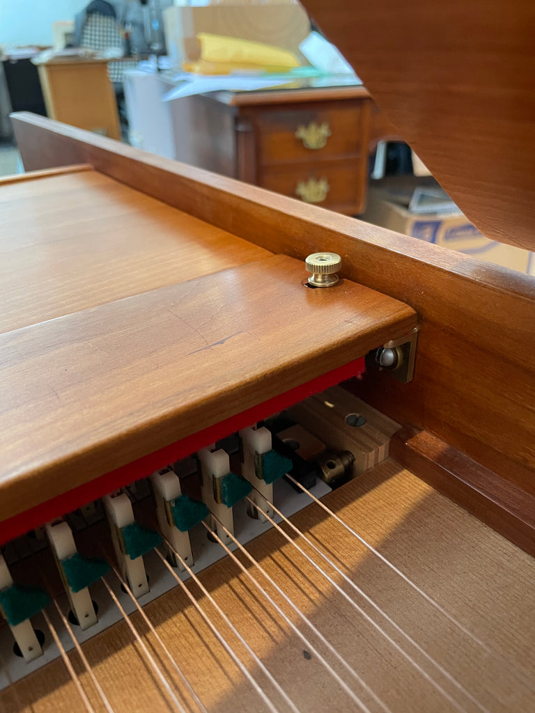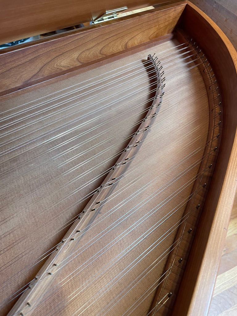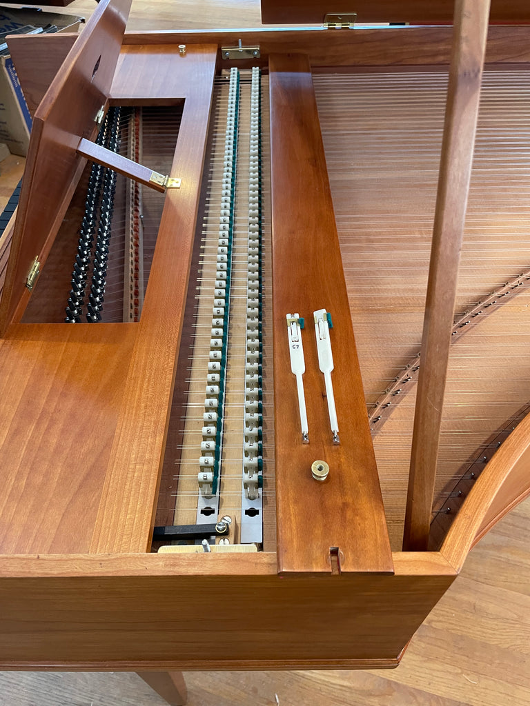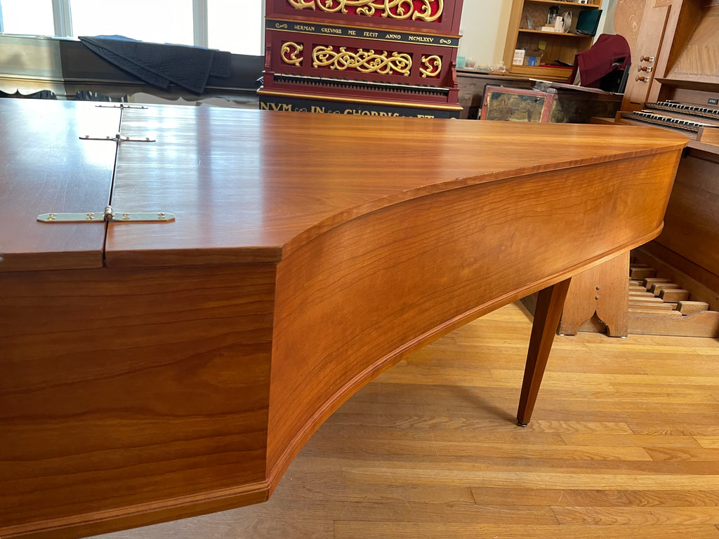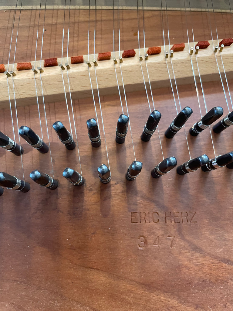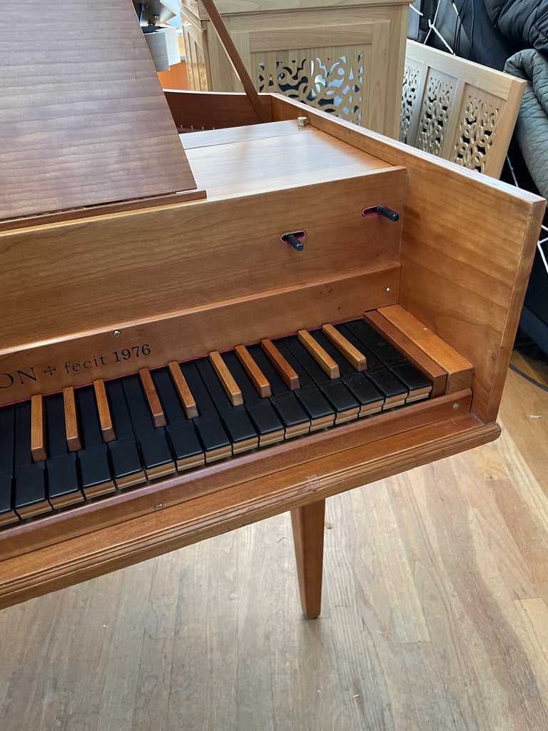 Eric Herz German single - Model S - shop built in 1976/ HCH 2026. AA- f"' transposing 8'8' with buff stop. Case of hand rubbed/ waxed cherry with three tapered cherry legs ( screw on). The 57 note keyboard has ebony naturals with cherry sharps. With full kit; optional cover. We have just completed a full rebuild and have an instrument with a big voice offered at $8900. Ready to go 2/1/26.