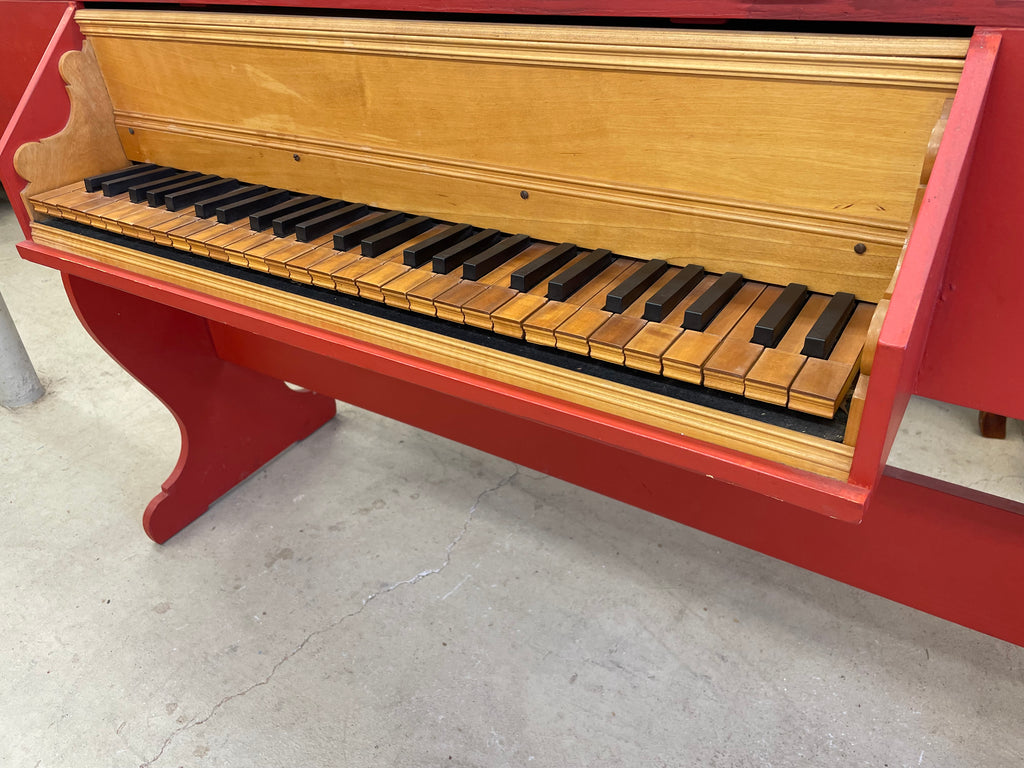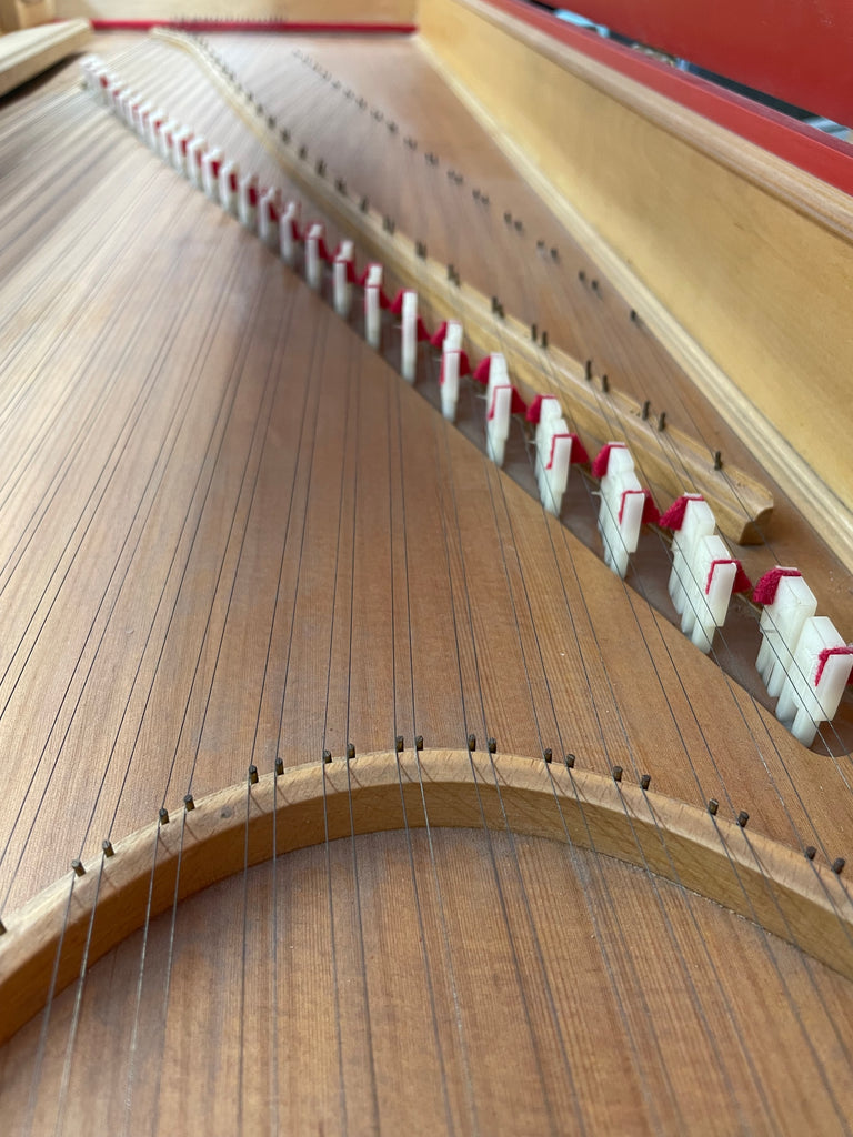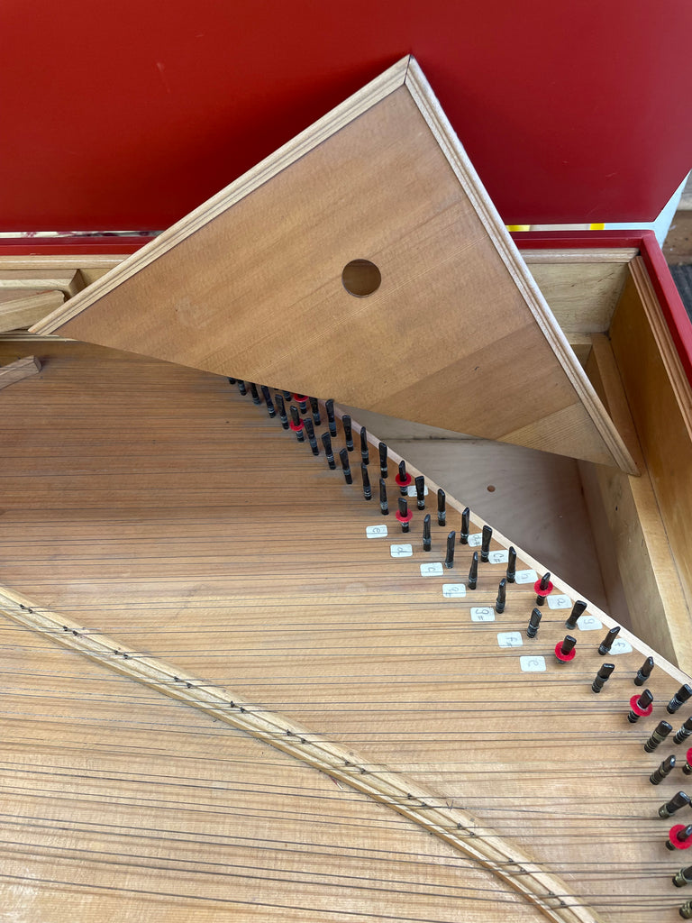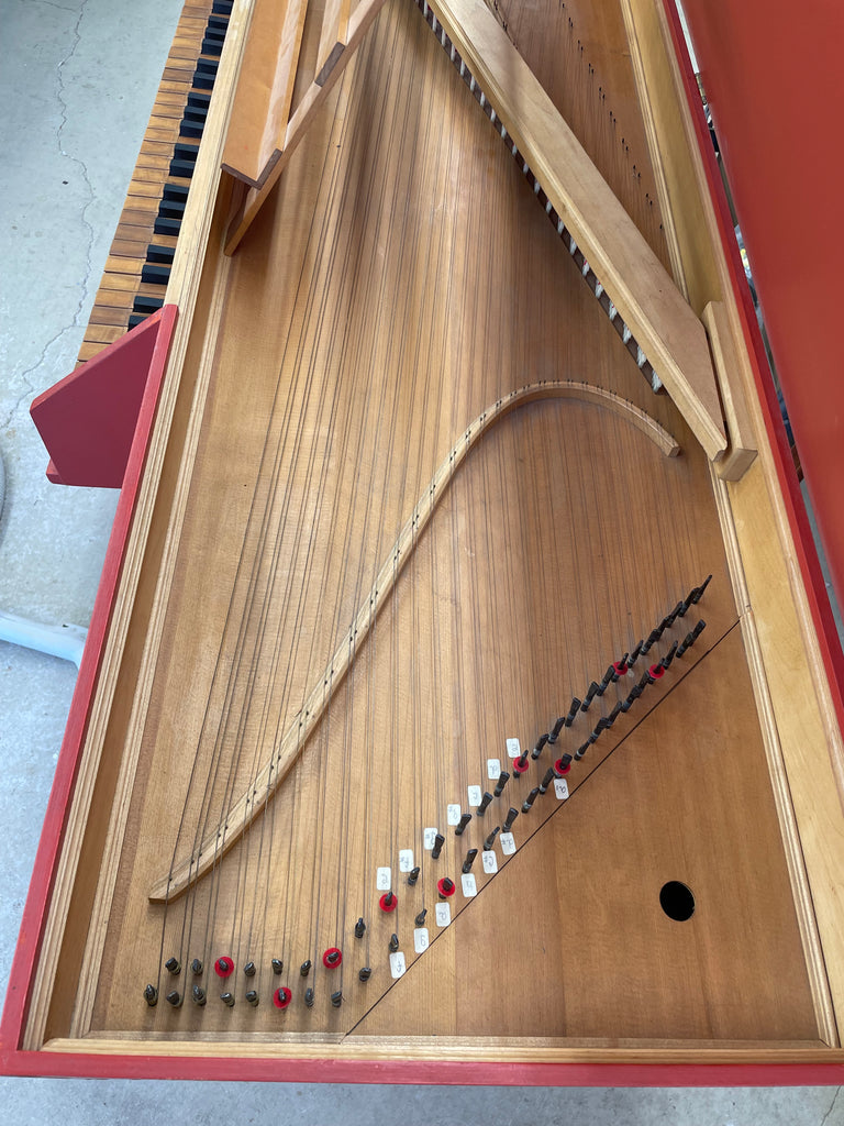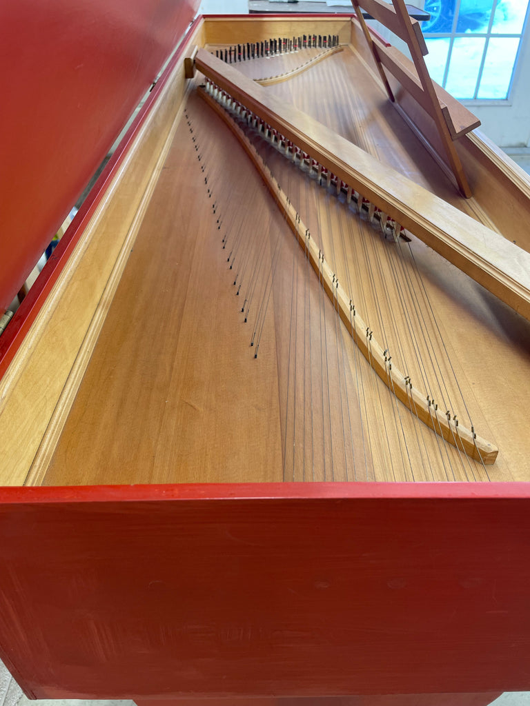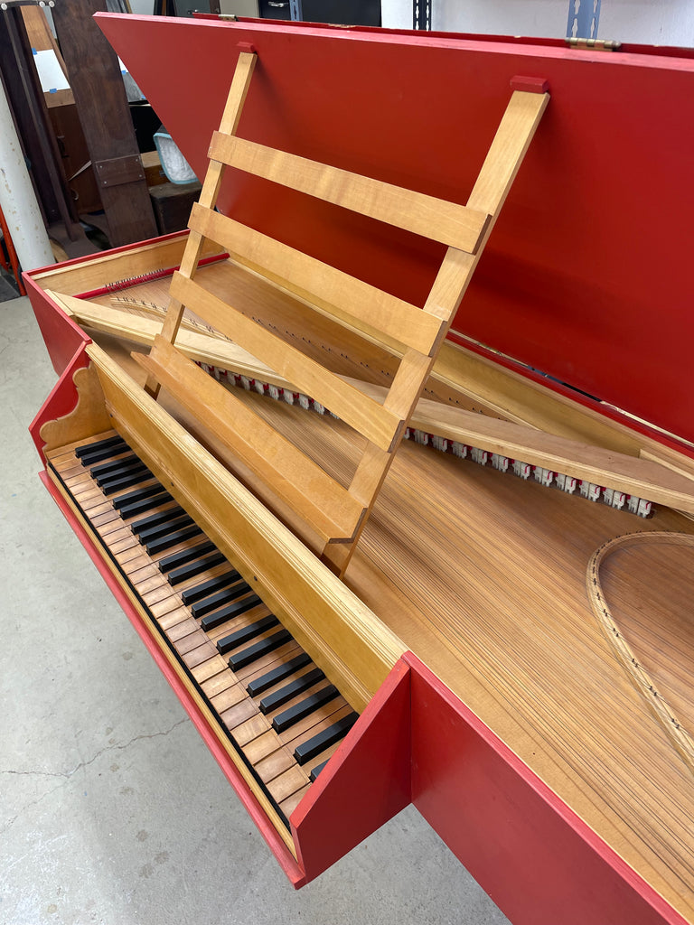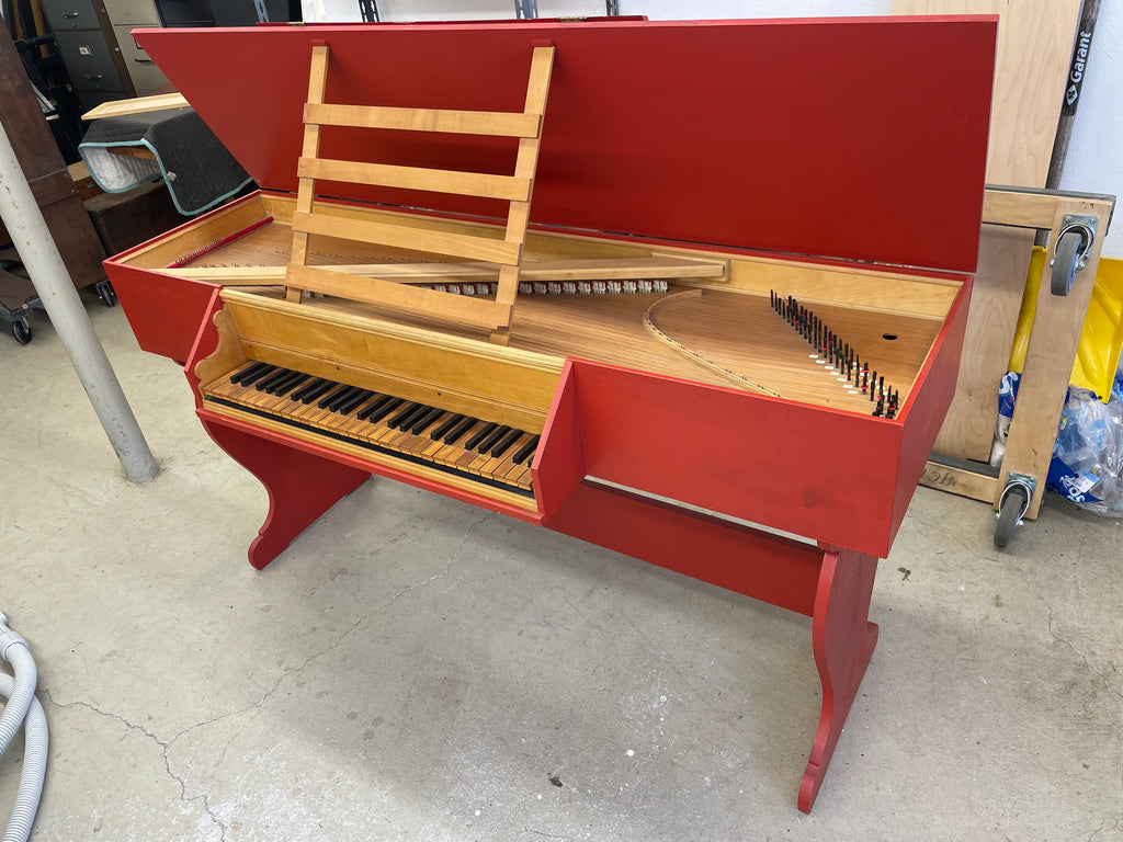 Zuckermann design Italian virginal, fully rebuilt by HCH 2026. BB-f”’ at 440. With 54 note keyboard of boxwood with black sharps. Photos show instrument in arrival condition. Shop plan will consist of refinishing of keyboard and soundboard, full restringing and revoicing. Offered at $6800. and available 120 days from contract.
