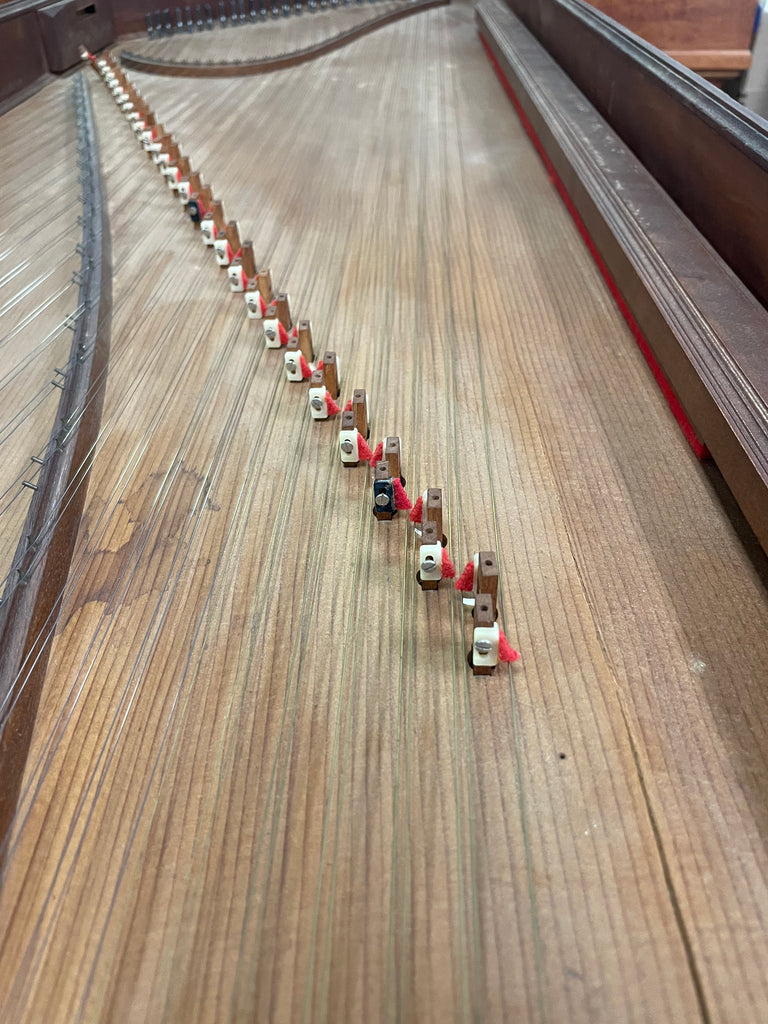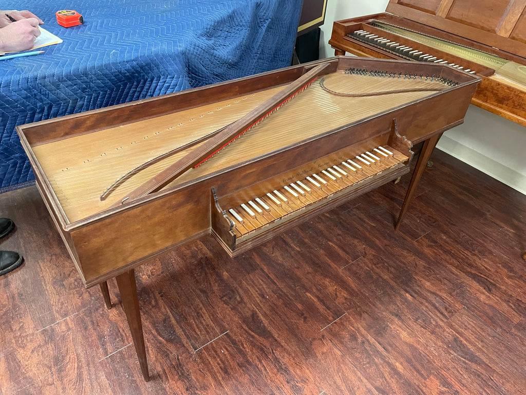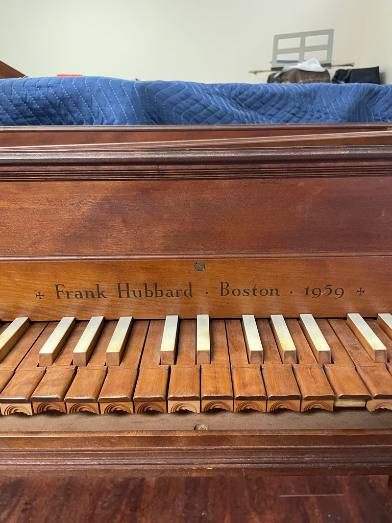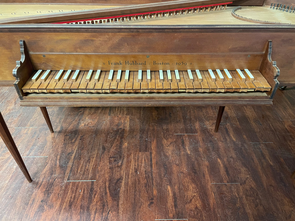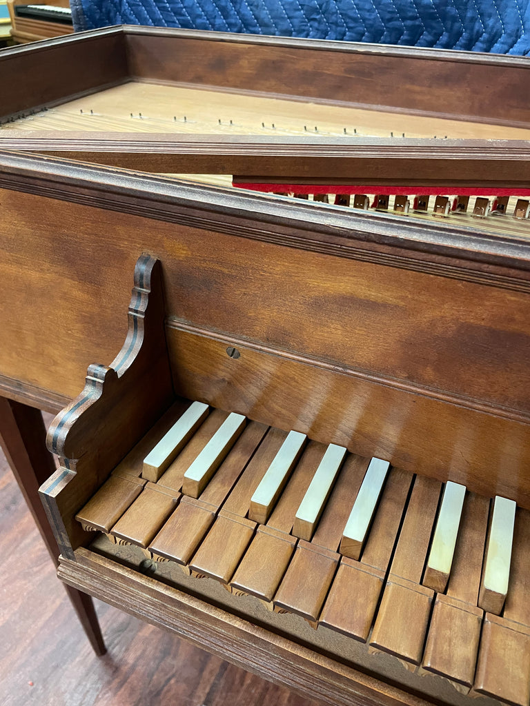 Frank Hubbard 17th Century Italian virginal, 1959. C-f”’ with cherry case, and keyboard of cherry and ebony ( sharps) . Wooden jacks with delrin plectra. 64” x 23” with 6 1/4” octave. A collector's piece, this would go well to broaden a Museum's collection--both in design and provenance. Two audio samples from a 1955 Hubbard & Dowd Italian virginal ( same design) .